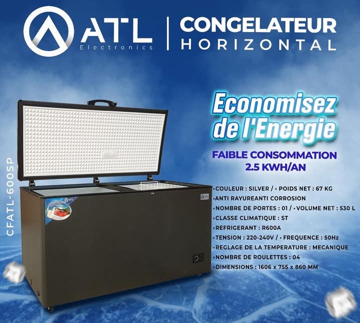 ATL Congélateur horizontal 530 ml CFATL-600SP Porte 01 Roulettes 04 220 – 240 V 50 Hz 67 kg