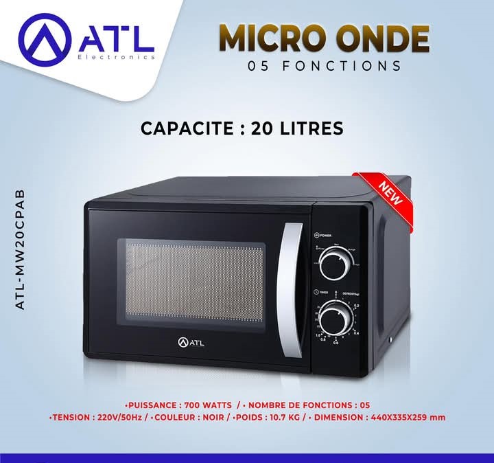 ATL Micro-onde noir 20 litres 05 fonctions ATL-MW20CPAB 700 W 220-50 Hz 10.7 kg