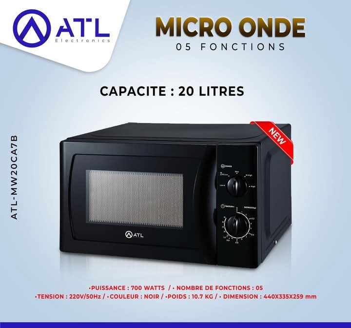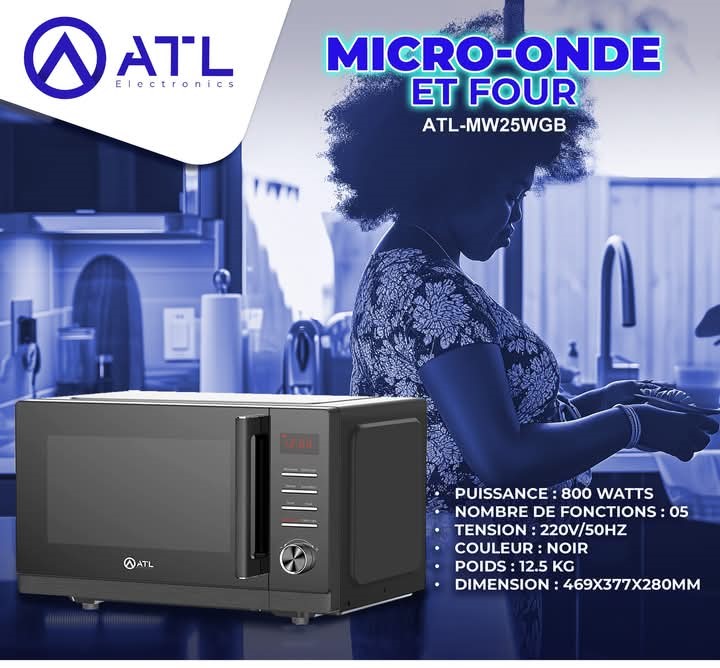 ATL Micro-onde noir 25 litres 05 fonctions ATL-MW25WGB 800 W 220 V – 50 Hz 12.5 kg