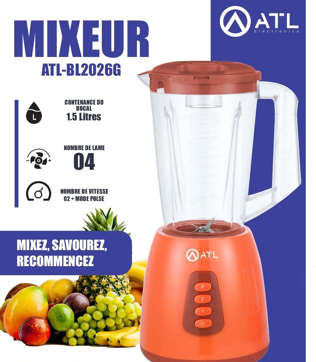 ATL Mixeur 1.5L 3V + Mode pulse ATL-BL2026G