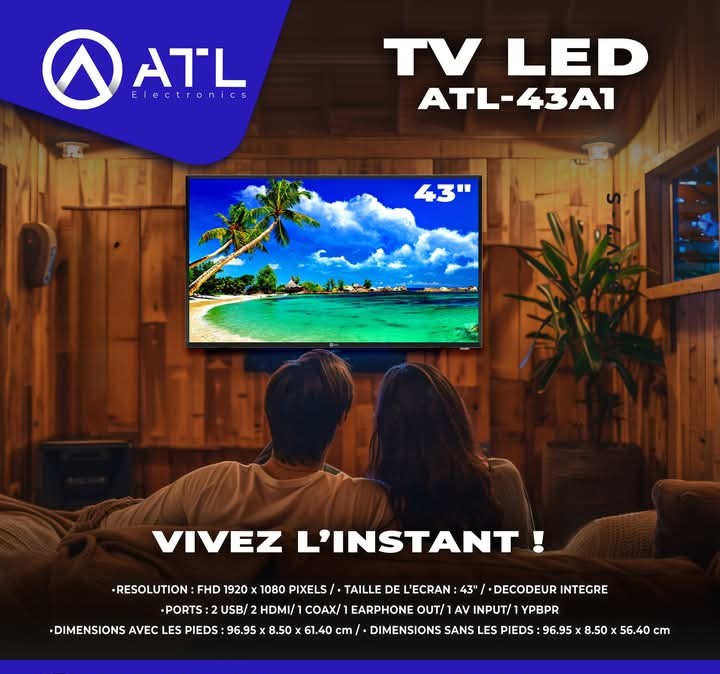 ATL TV LED 43 pouces FHD 1920 x 1080 Pixels ATL-43A1 Décodeur intégré