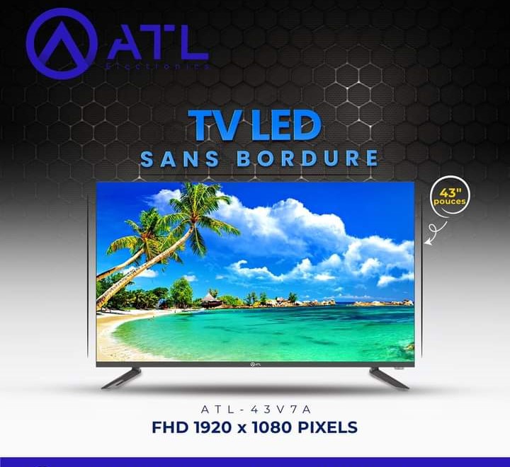 ATL TV LED sans bordure 43 » FDH 1920 x 1080 Pixels ATL-43V7A Décodeur intégré.