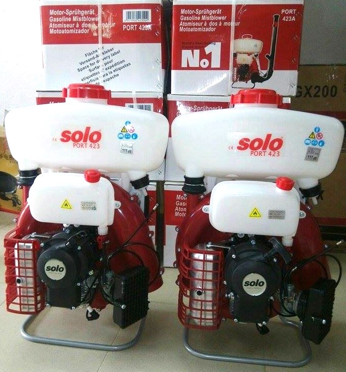 SOLO Port 423 est un atomiseur de grande qualité, conçu pour la pulvérisation et la protection phytosanitaire des plantations, le nettoyage et la désinfection des espaces verts et publiques. Il est synonyme de fiabilité et de robustesse. Avec son solide moteur 2 temps SOLO de 72,3 cm3 et ses 3 KV, il fait également partie des plus puissants.