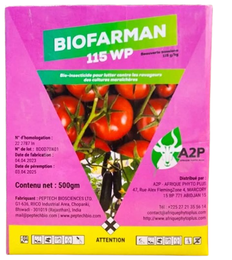 BIOFARMAN 115 WP est un insecticide biologique, organique, unique, pour lutter contre les ravageurs des cultures maraichères. Il remplace les pesticides dangereux et peut être introduit comme solution IPM.