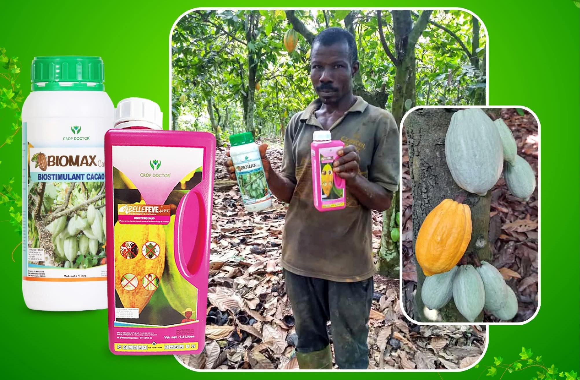 BIOMAX CACAO est un biostimulant pour la fructification, la croissance et la production abondante du cacaoyer.