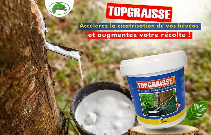 TOPGRAISSE est un cicatrisant exceptionnel qui accélère la cicatrisation des hévéas et permet d’augmenter la récolte.