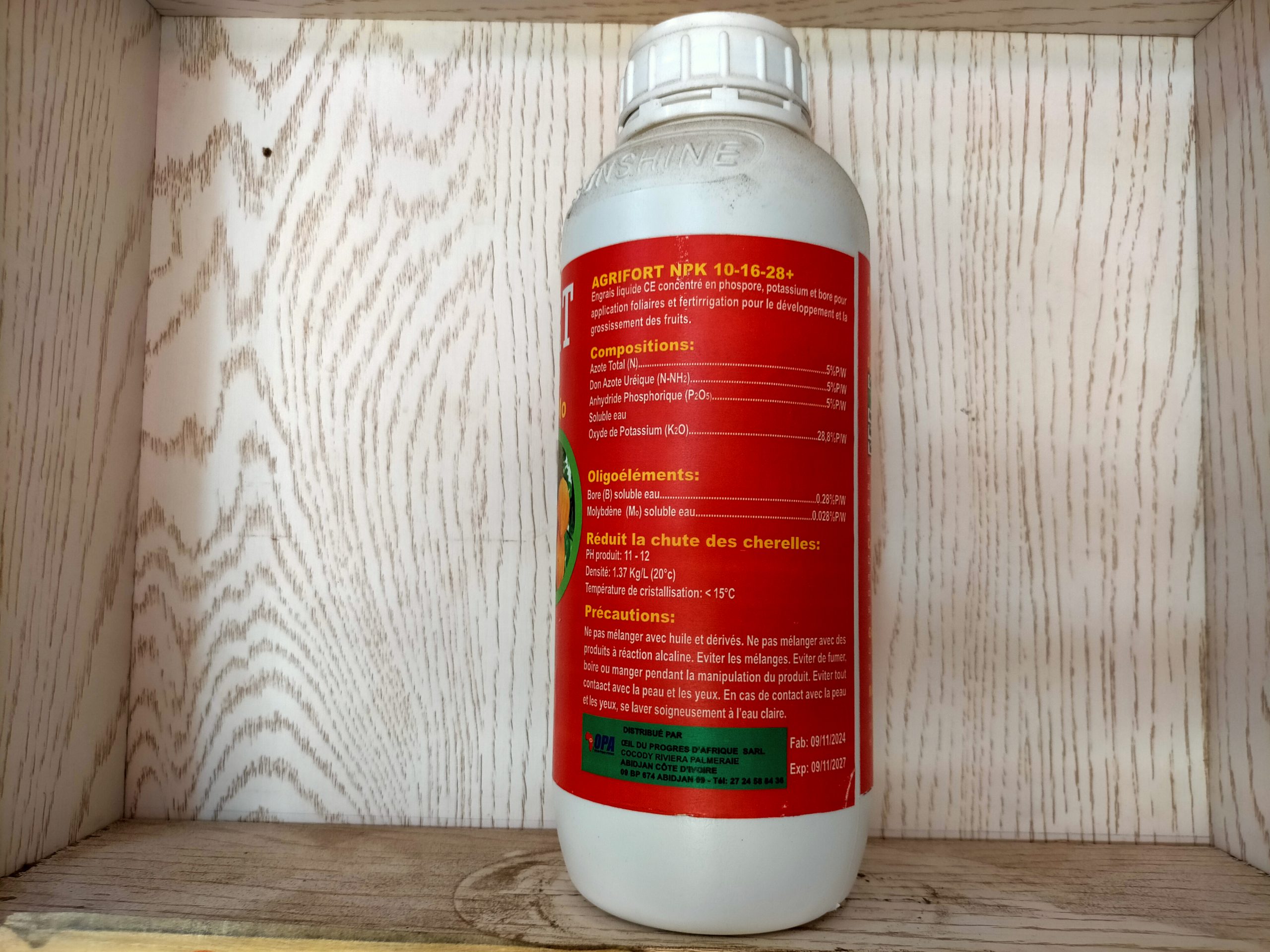 Engrais foliaire AGRIFORT NPK 10-16-28 1 litre – Spécial cacao
