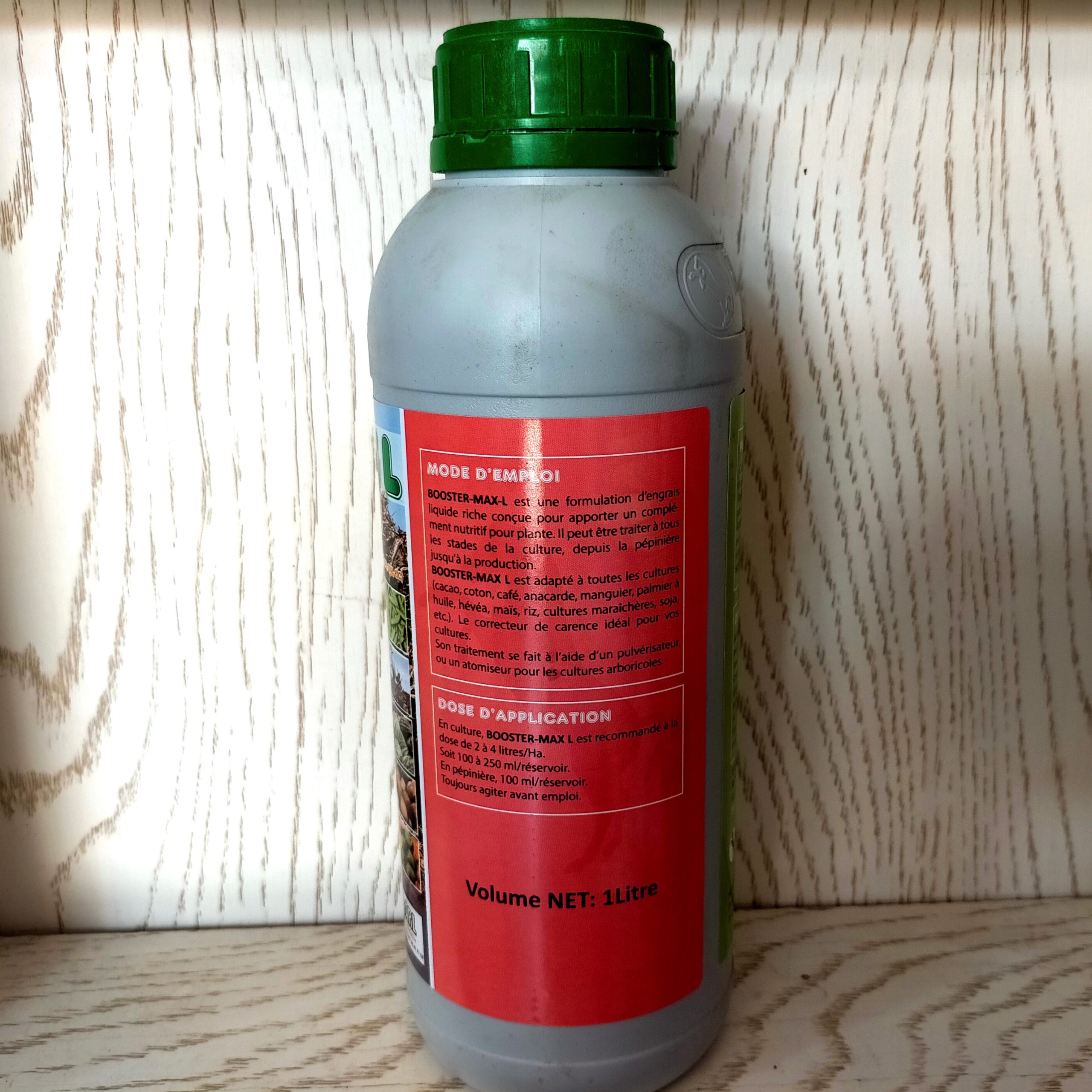 En culture, BOOSTER-M L et recommandé à la dose de 2 à 4 litres / hectare, soit 100 à 250 ml / réservoir.