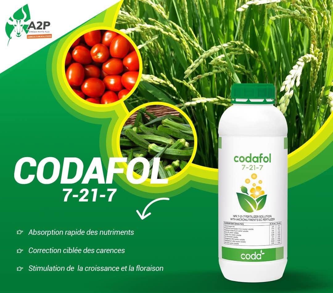 Engrais foliaire CODAFOL 7 – 21 – 7 Croissance 1 litre – Riz, cultures maraichères