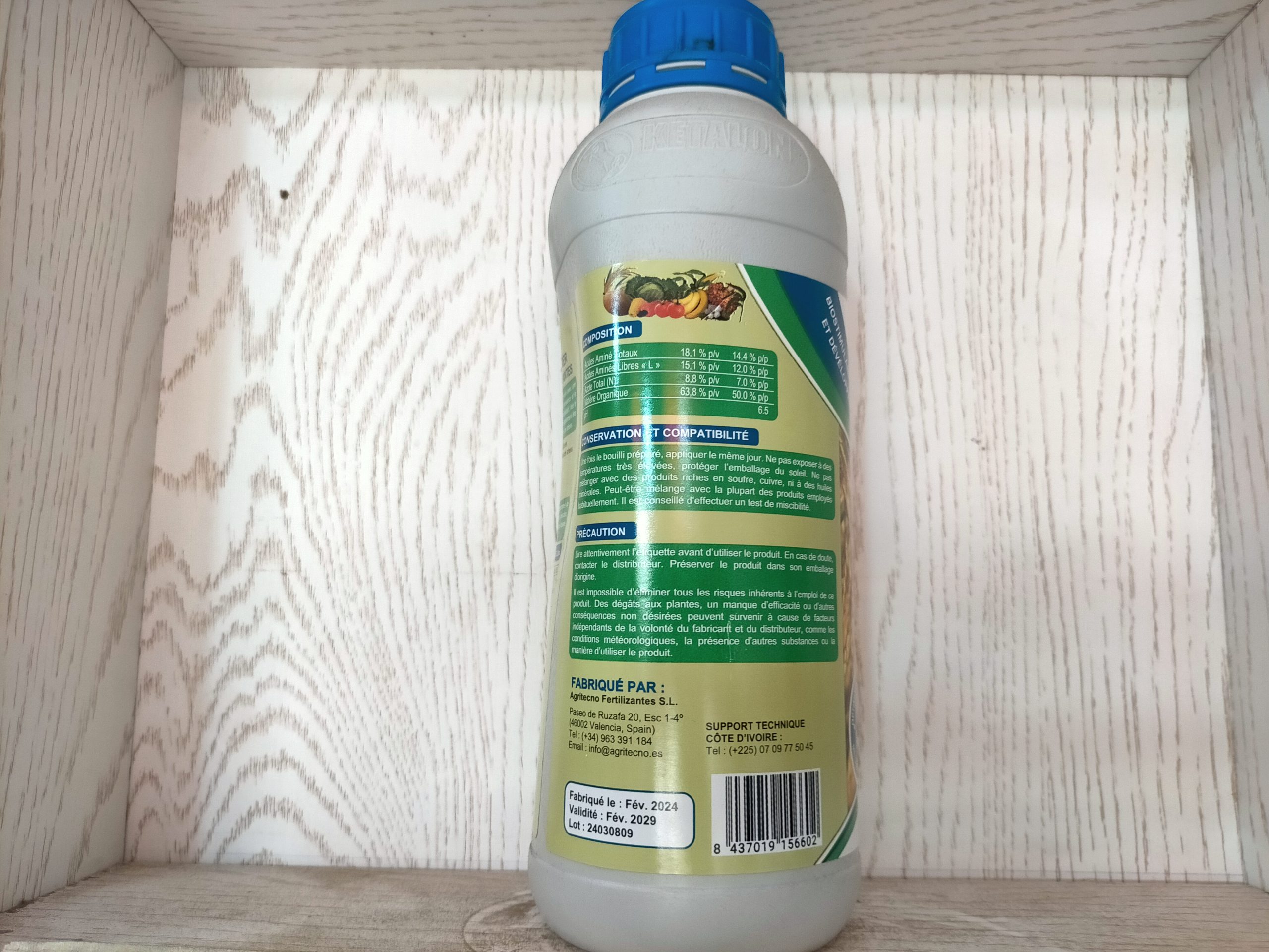 - Acides aminés libres « L » 15,1 % p/v 0 % p/p