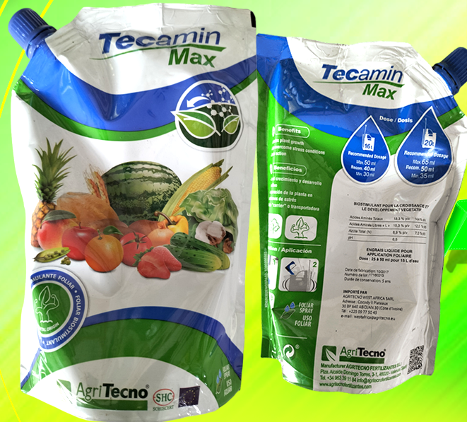 TECAMIN MAX est un engrais foliaire organique pour la croissance et le développement végétatif des plantes.