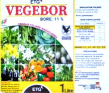 Engrais foliaire VEGEBOR (Bore 11%) 1 litre – Cultures maraichères