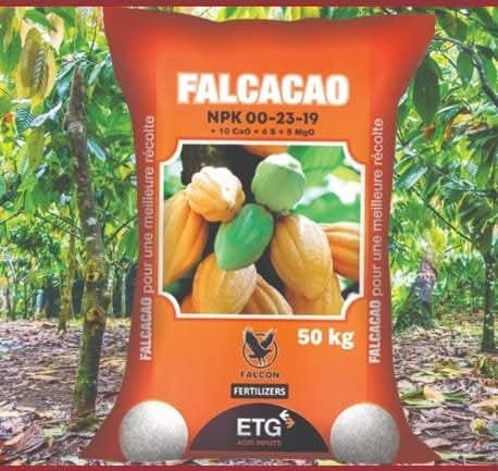 FALCACAO NPK 00-23-19 est un engrais granulé spécial cacao de qualité supérieure. Il permet aux cacaoyers de développer des fleurs, des cherelles et des cabosses. Il assure le grossissement des cabosses et une abondance de qualité des fèves, et rend aussi le cacaoyer plus tolérant à un mauvais ombrage.