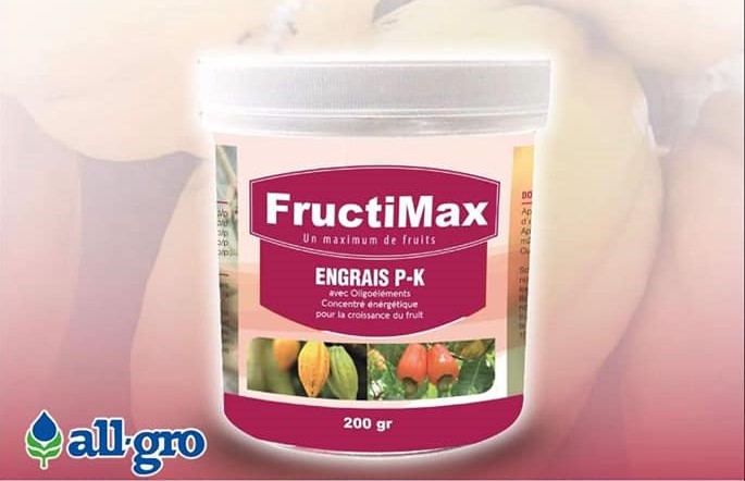 FRUCTIMAX est un engrais P-K avec oligoéléments, un concentré énergétique pour la croissance du fruit dans la culture du cacao et de l’anacardier.