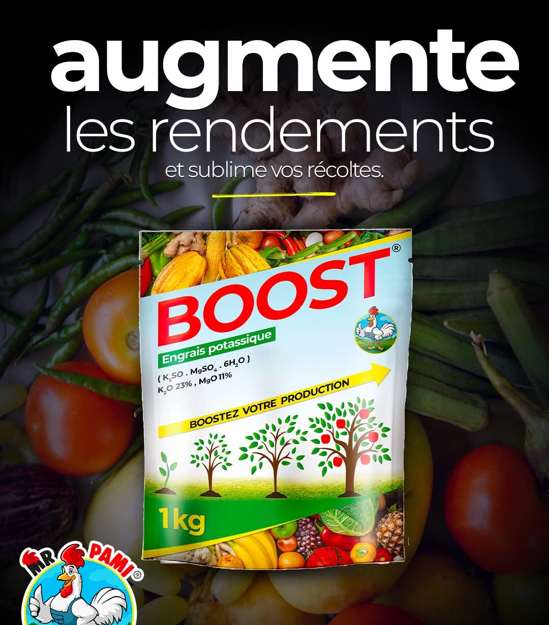 BOOST est un engrais unique qui contient (3) éléments nutritifs importants dans une culture dans une protection équilibrée. Il joue donc un rôle vital dans la croissance rapide et saine de toutes les cultures avec pour résultat une qualité et un rendement élevé.
