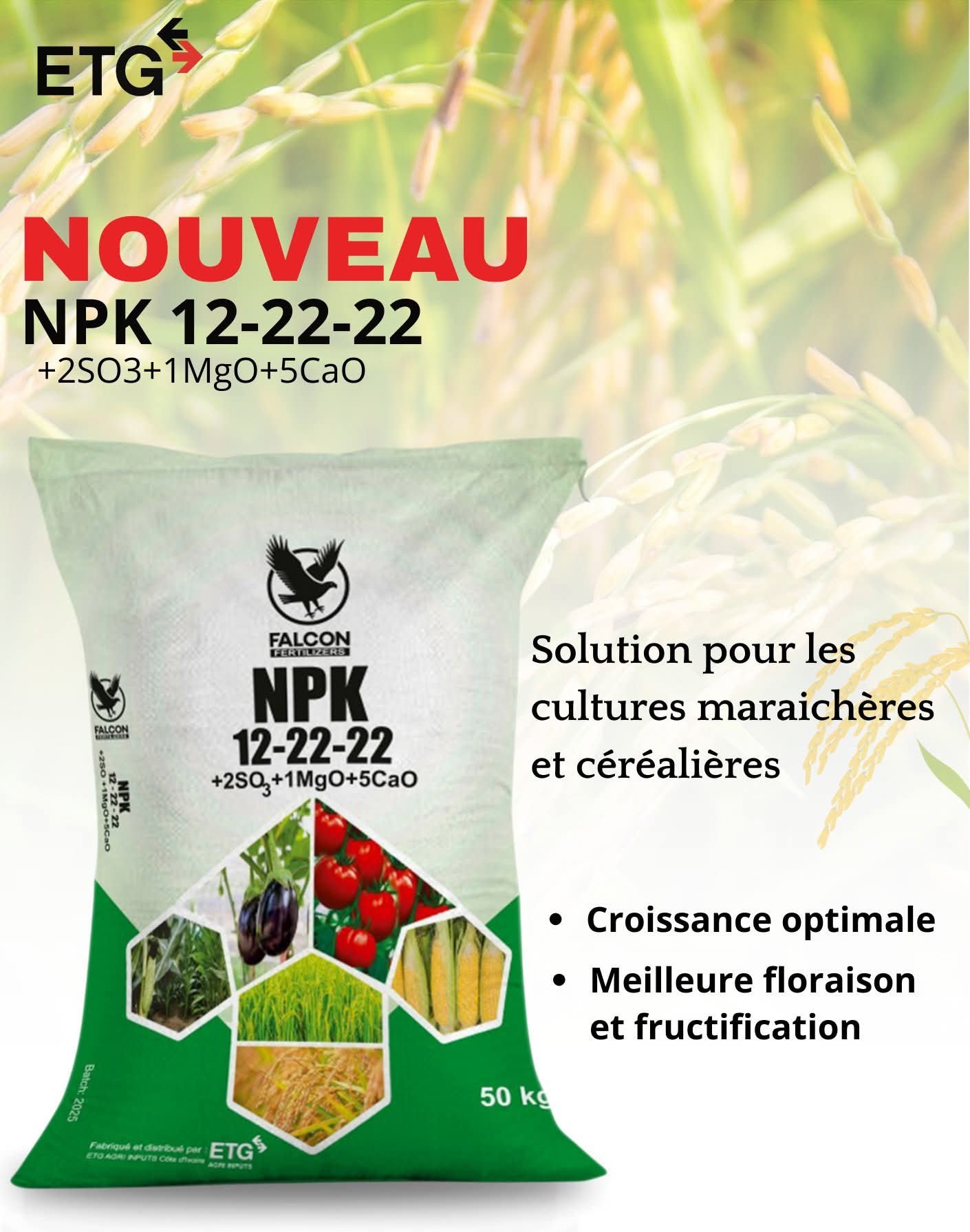 Engrais granulé soluble NPK 12-22-22 50 kg – Cultures maraichères et céréalières