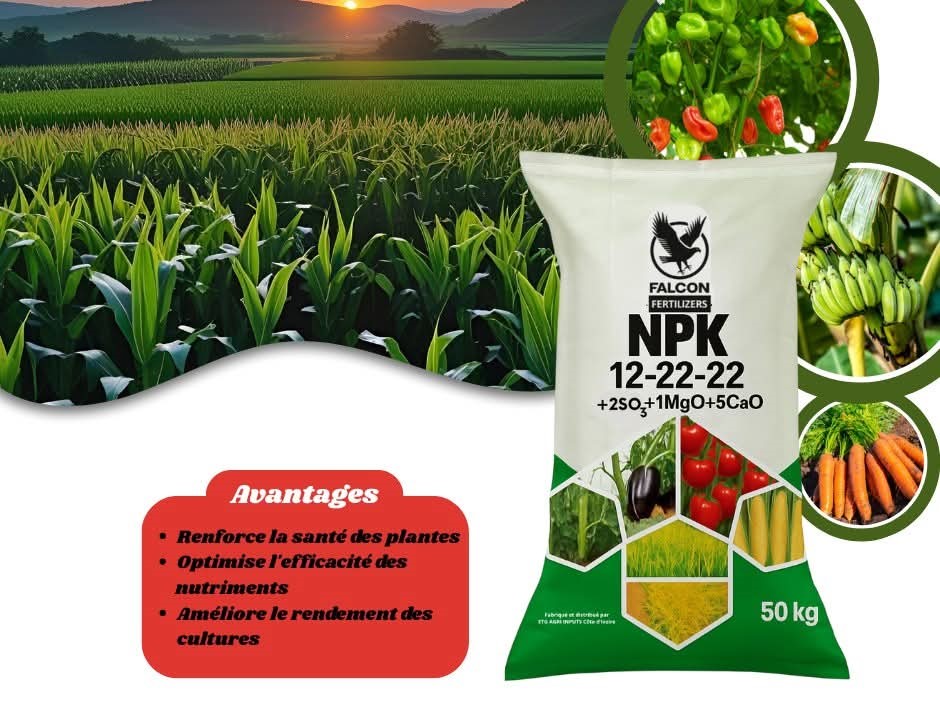 Engrais granulé soluble NPK 12-22-22 50 kg – Maïs, riz, cultures maraichères, banane