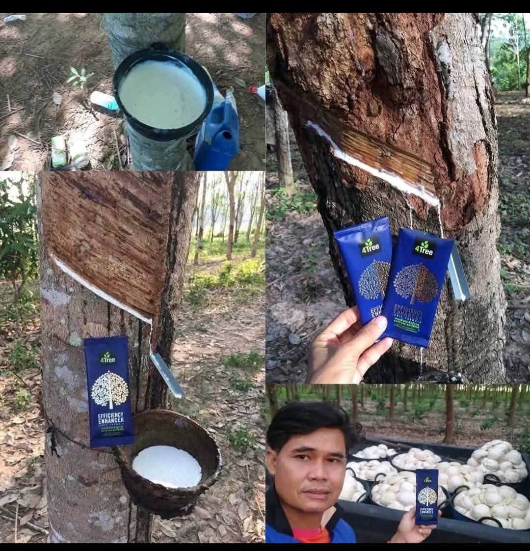 L (Palmier à huile, hévéa, durian, arbres fruitiers) : 2 cuillères + 20 litres d’eau (Pulvérisation tous les 15 à 30 jours) = 1,5 hectare / hectare.
