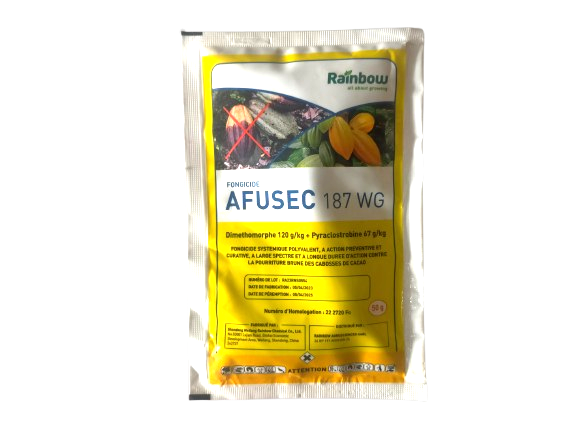AFUSEC 187 WG est un fongicide systémique polyvalent, à action préventive et curative, à large spectre et à longue durée contre la pourriture brune des cabosses de cacao.