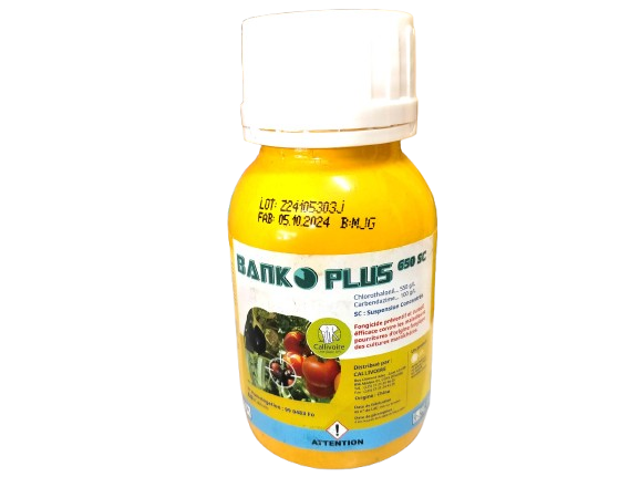 BANKO PLUS 650 SC est un Fongicide préventif et curatif, efficace contre les maladies et pourritures d’origine fongique des cultures maraichères.