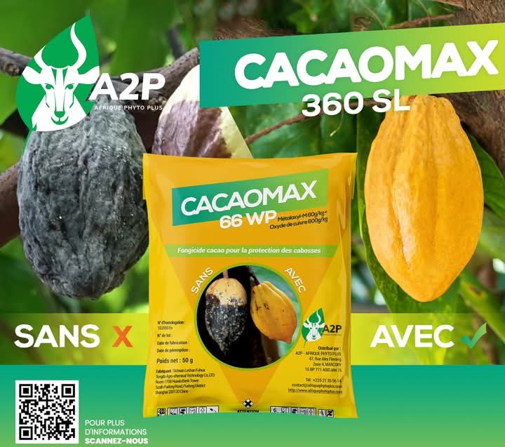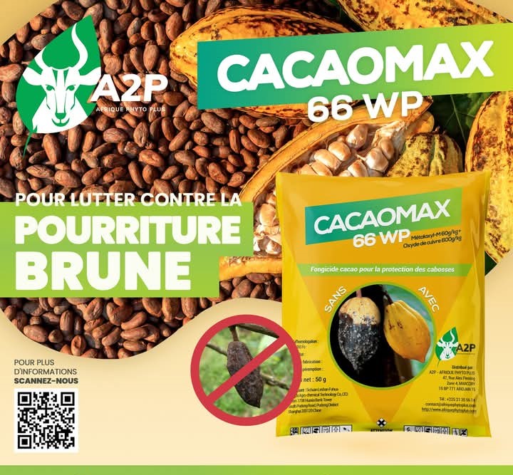 CACAOMAX 66 WP est un fongicide pour lutter contre la pourriture brune et pour la protection des cabosses de cacao.