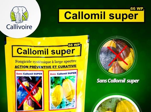 CALLOMIL SUPER 66 WP est un fongicide systémique à large spectre à action préventive et curative contre la pourriture brune du cacao.