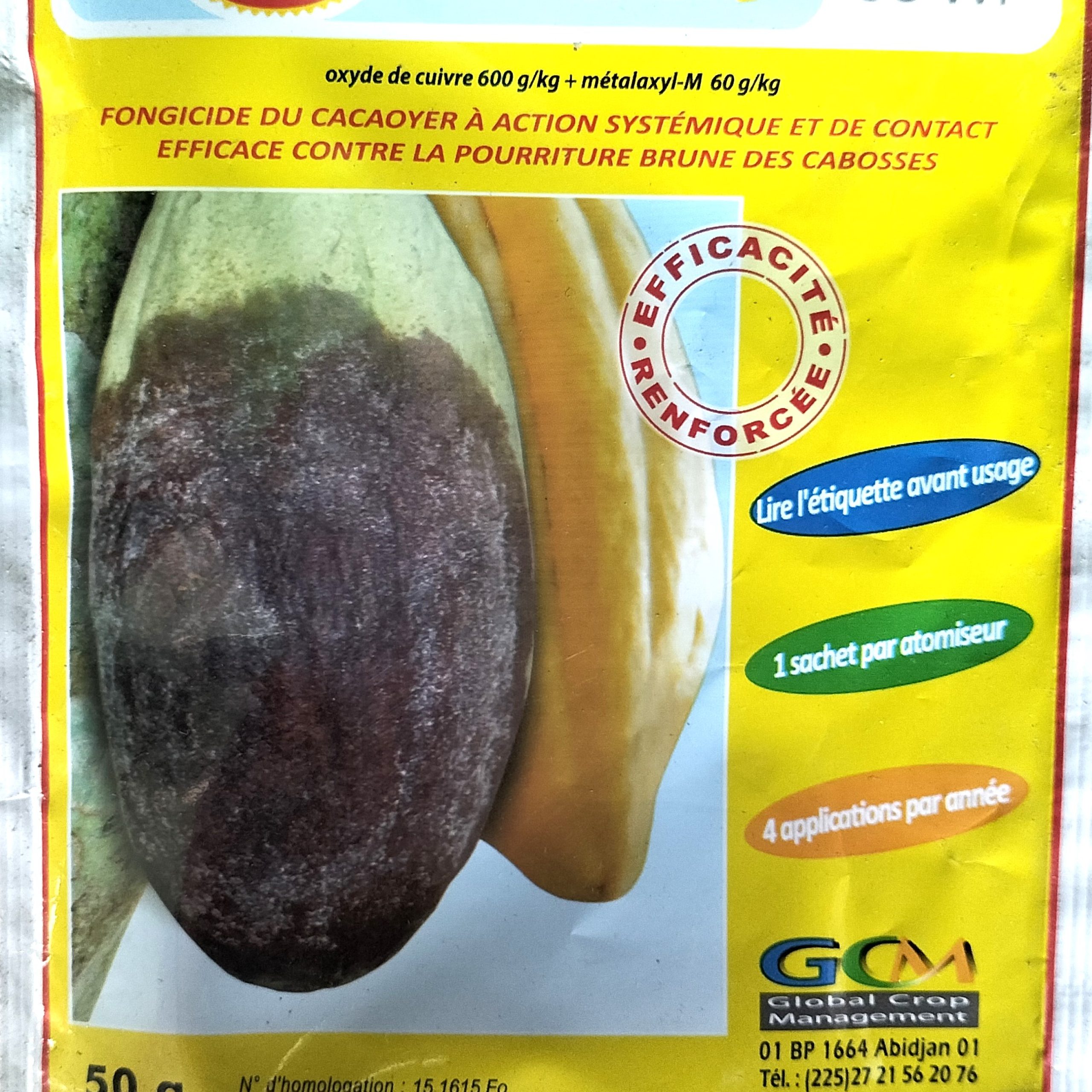 FONGIS EXTRA 66 WP est un fongicide du cacaoyer à action systémique et de contact efficace contre la pourriture brune des cabosses.