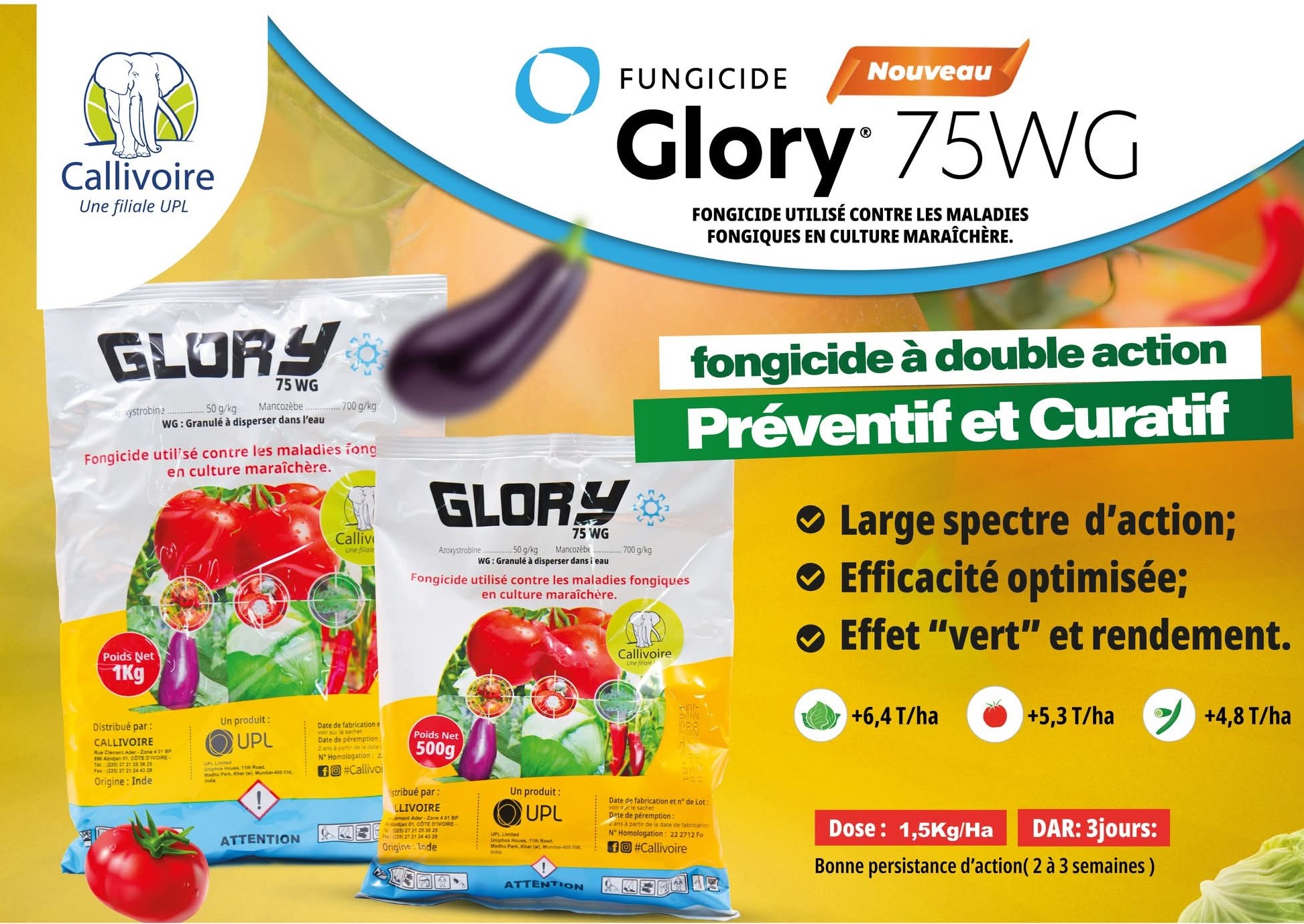 GLORY 75 WG est un fongicide à double action utilisé à titre préventif et curatif contre les maladies fongiques en cultures maraichères.
