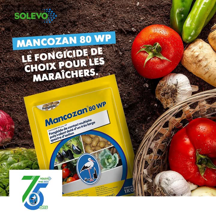 MANCOZAN 80 WP est un fongicide formulé en poudre mouillable (WP) destinée à être dispersée dans l’eau pour être appliqué par pulvérisation. Ce produit de la famille des dithiocaramates, agit préventivement et offre une très bonne rémanence contre de très nombreuses maladies des cultures vivrières, fruitières et maraichères notamment de la tomate et de la laitue : alternariose, anthracnose, cercosporiose, cladosporiose, rouille et mildiou (phytophtora infestants), etc.