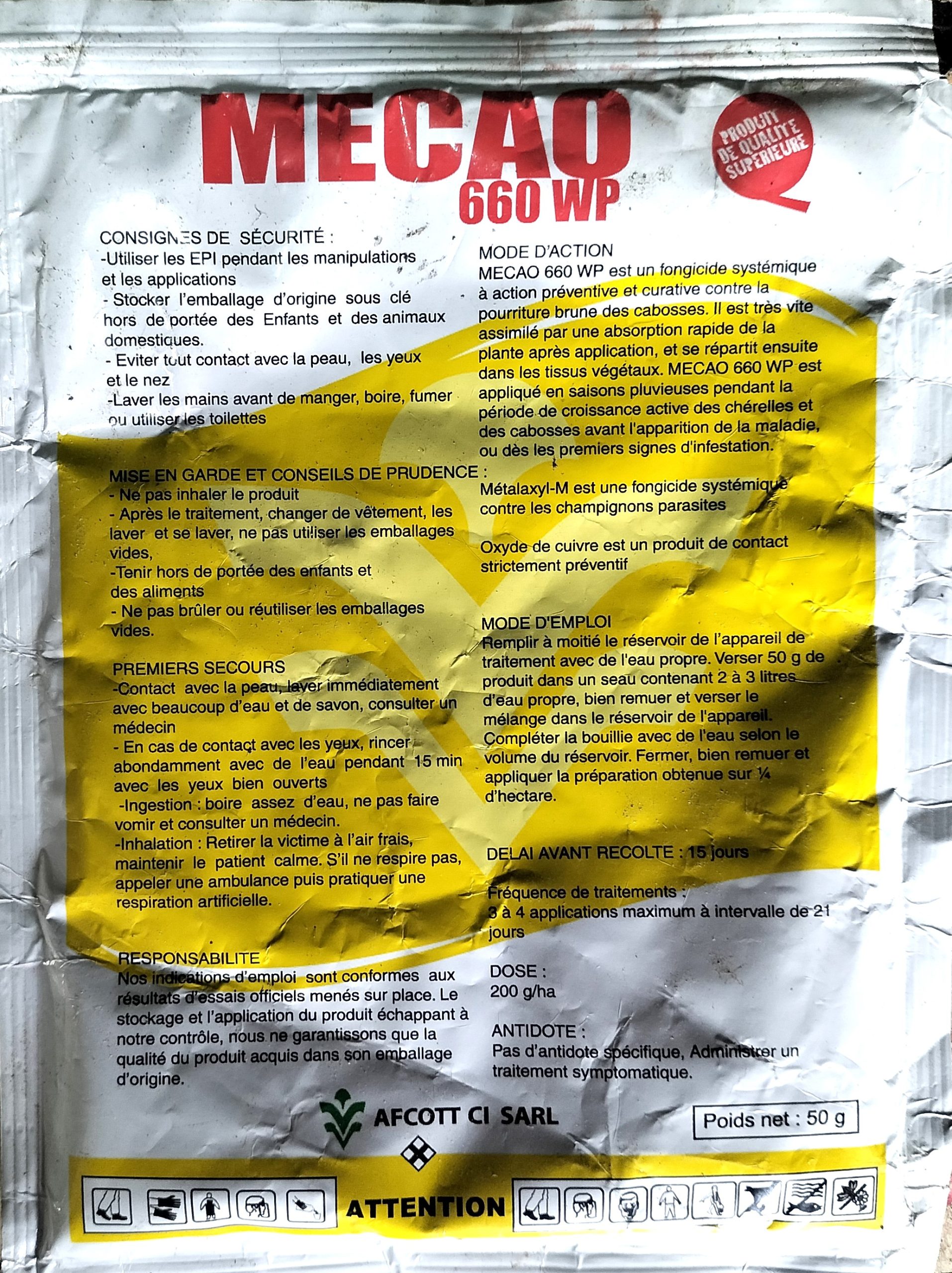 MECAO 660 WP est un fongicide systémique pour la lutte contre la pourriture des cabosses.