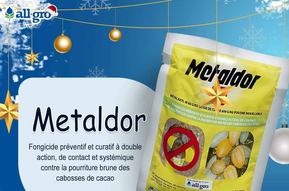 METALDOR 600 WP est un fongicide préventif et curatif à double action, de contact et systémique contre la pourriture brune des cabosses de cacao.
