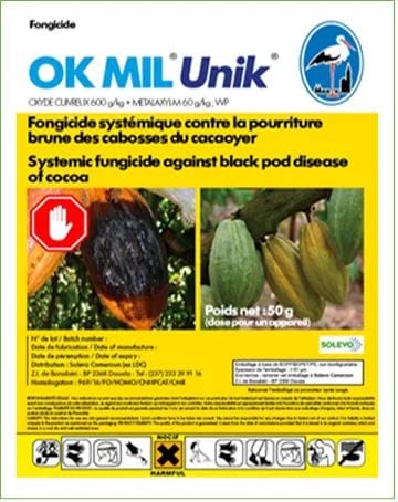 O.K.MIL Unik 66 WP est un fongicide systémique contre la pourriture brune des cabosses de cacaoyer. Il est utilisé à titre préventif et curatif.