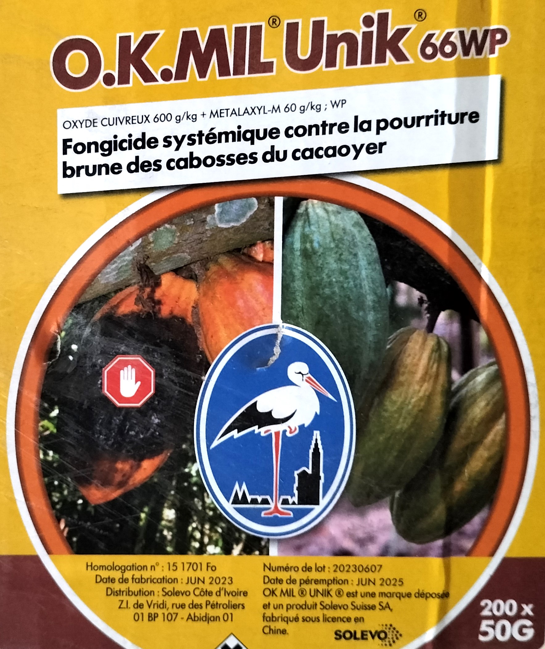 O.K.MIL Unik 66 WP est un fongicide systémique contre la pourriture brune des cabosses de cacaoyer. Il est utilisé à titre préventif et curatif.