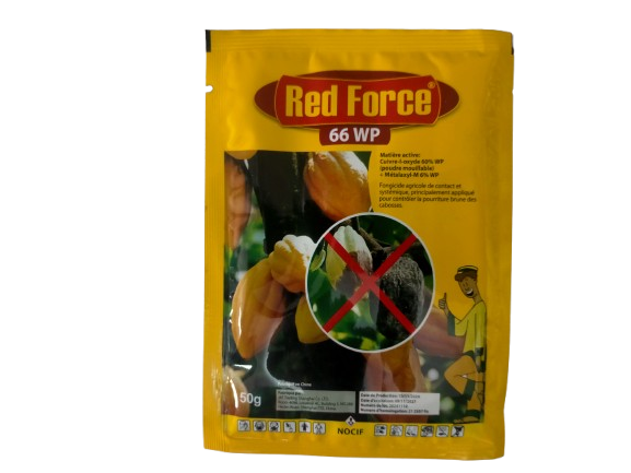 RED FORCE 66 WP est un fongicide agricole en granulés de contact et systémique, principalement appliqué pour maitriser la pourriture brune des cabosses.