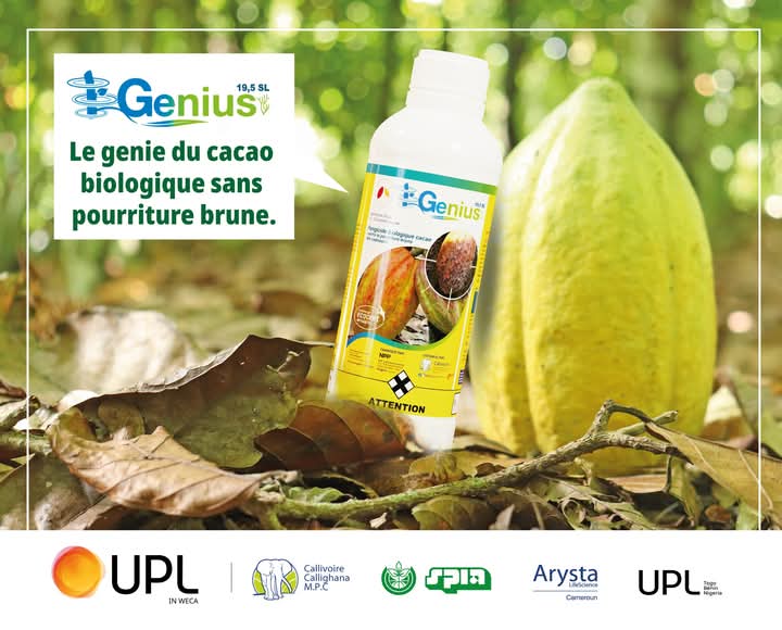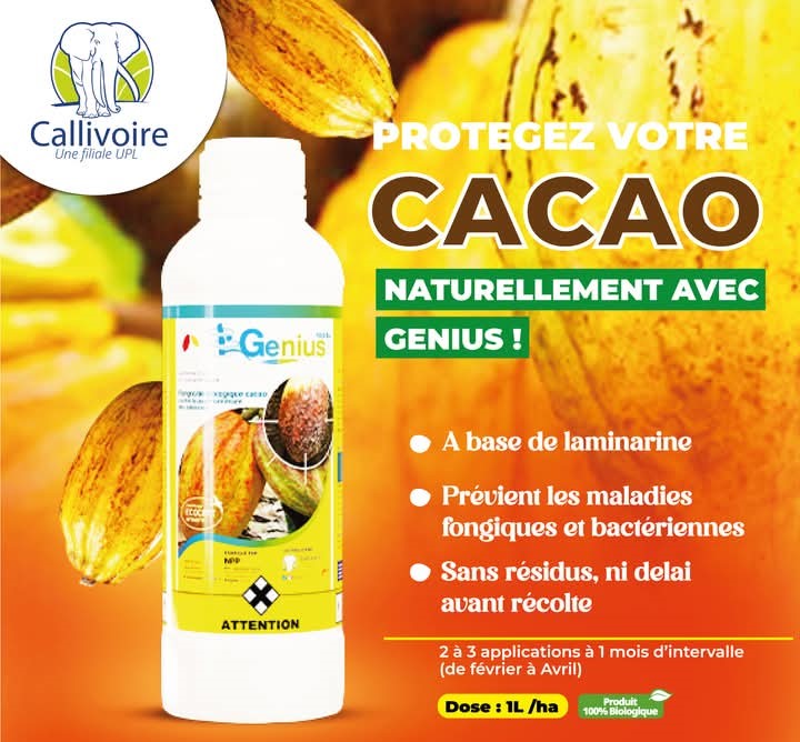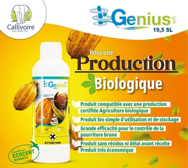 GENIUS 19.5 SL est un fongicide à base de laminarine, 100% biologique, conçu pour la protection du cacaoyer contre la pourriture brune. Il stimule le cacaoyer à bien se défendre.