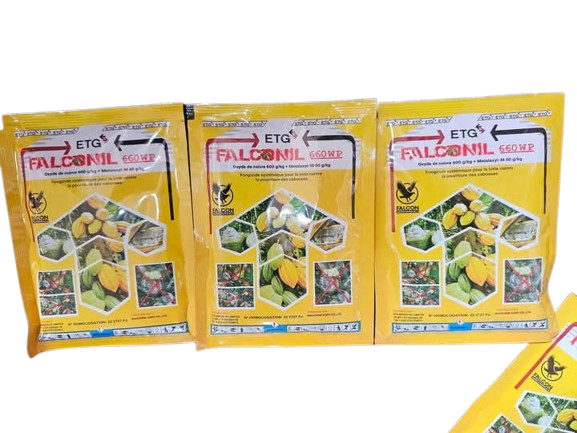 FALCONIL 660 WP est un fongicide systémique à action préventive et curative contre la pourriture brune des cabosses. Il est très vite assimilé par une absorption rapide de la plante après application, et se répartit ensuite dans les tissus végétaux.