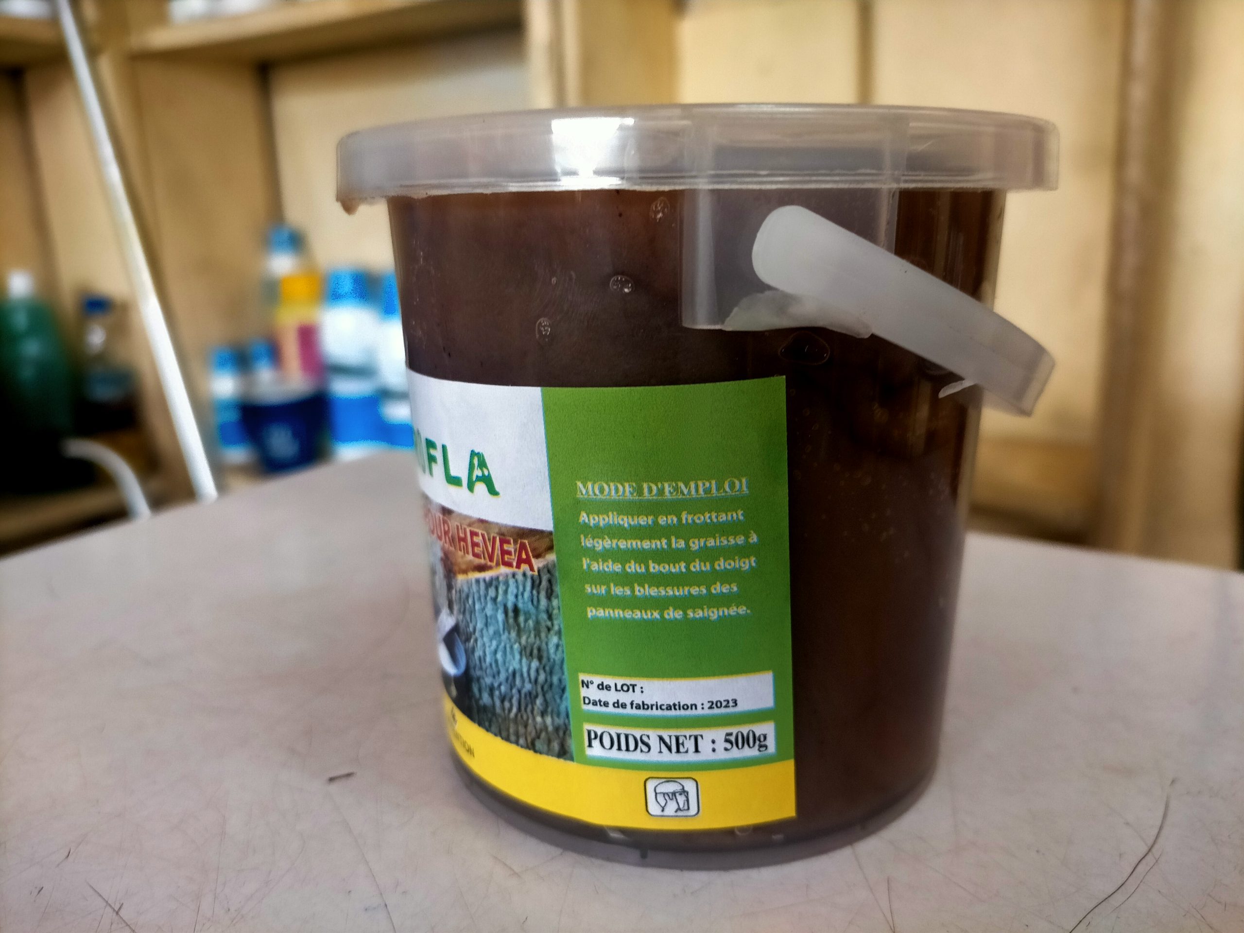 YIRIFLA est une graisse pour la cicatrisation des panneaux de saignée du bois d’hévéa.