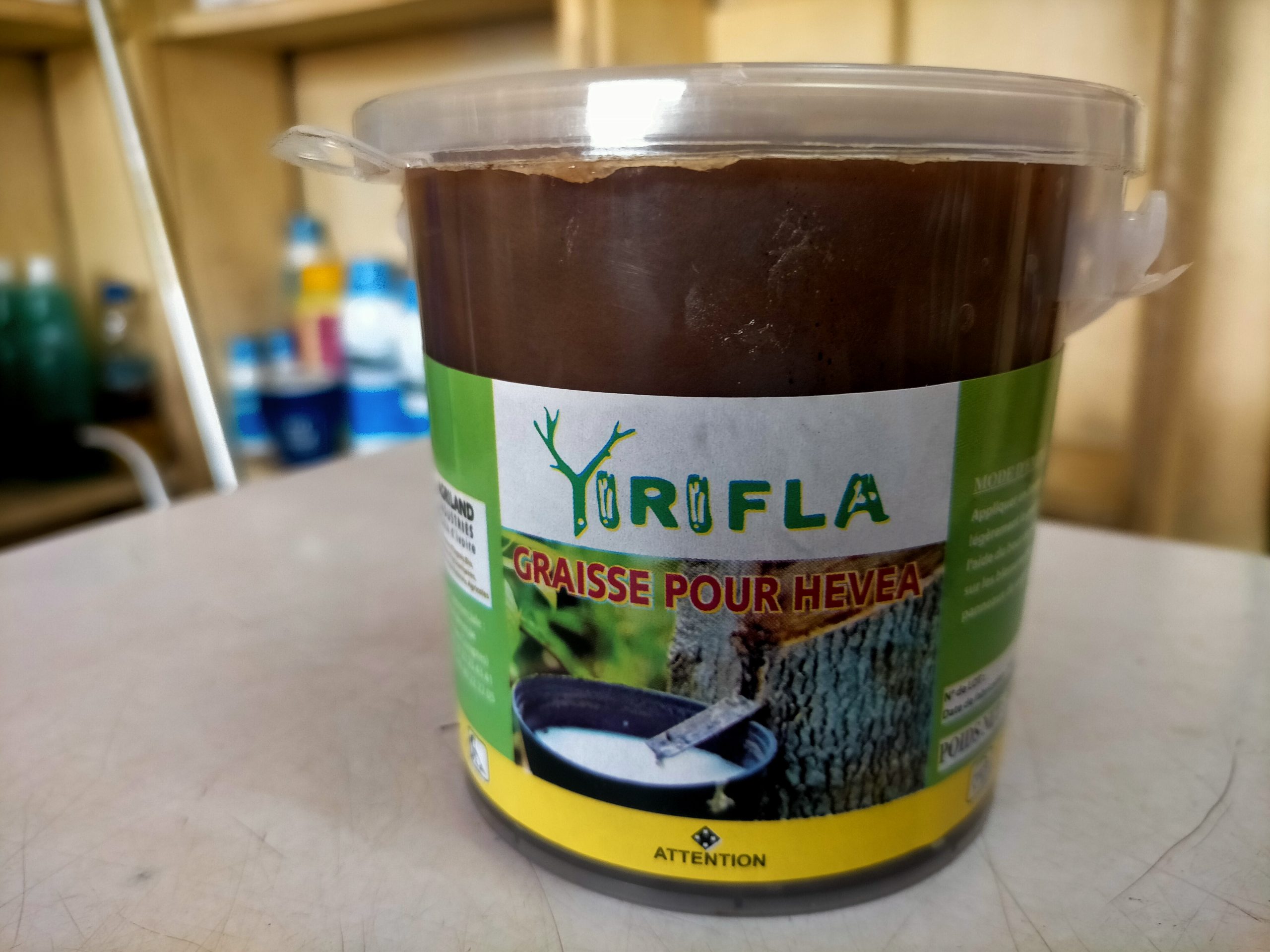YIRIFLA est une graisse pour la cicatrisation des panneaux de saignée du bois d’hévéa.