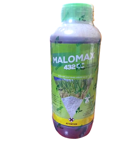 MALOMAX 432 EC est un herbicide sélectif systémique de post-levée efficace contre les mauvaises herbes et les graminées annuelles et vivaces, des dicotylédones en riziculture (riz irrigué et de bas – fonds, riz pluvial).