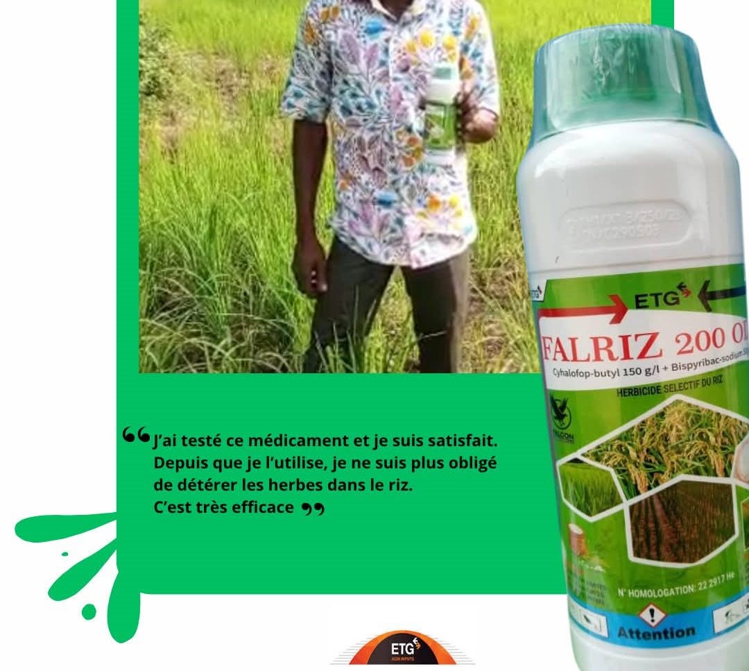 FALRIZ 200 OD est un herbicide systémique sélectif utilisé en pré et post-élevée pour l’élimination des mauvaises herbes en riziculture.
