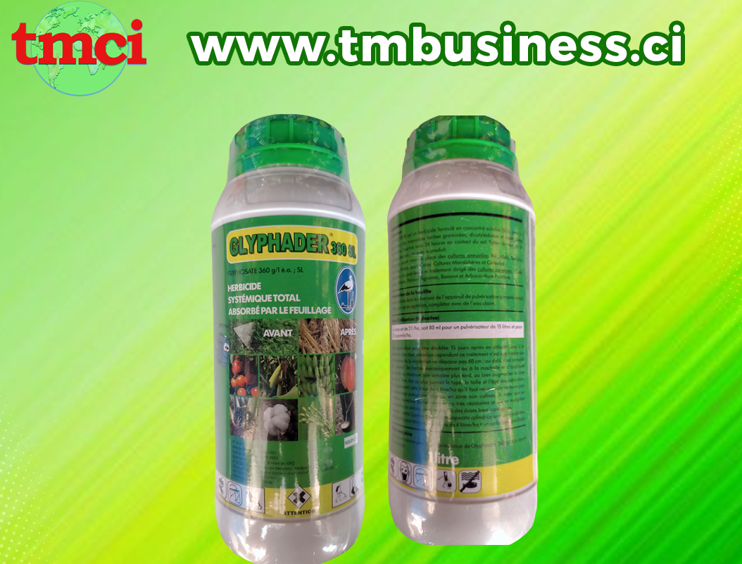 GLYPHADER 360 SL s’utilise avant la mise en place des cultures annuelles : riz, maïs, sorgho, arachide, niébé, soja, coton ; cultures maraichères et céréales etc. Il s’utilise aussi en post-levée et traitement dirigé des cultures pérennes : café, cacao, hévéa, palmier à huile; Agrumes, banane et arboriculture fruitière, désherbage des plantes aquatiques.