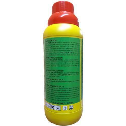 SOLUTION 480 SL est un herbicide, post-émergent, systémique et non sélectif. Appliqué sur les feuilles des mauvaises herbes, il est transporté à travers la plante jusqu’aux extrémités des racines. Après deux semaines, il détruit toutes les mauvaises herbes des feuilles aux racines, stolons, bulbes et rhizomes. SOLUTION 480 SL permet de lutter contre les mauvaises herbes de toutes les cultures.