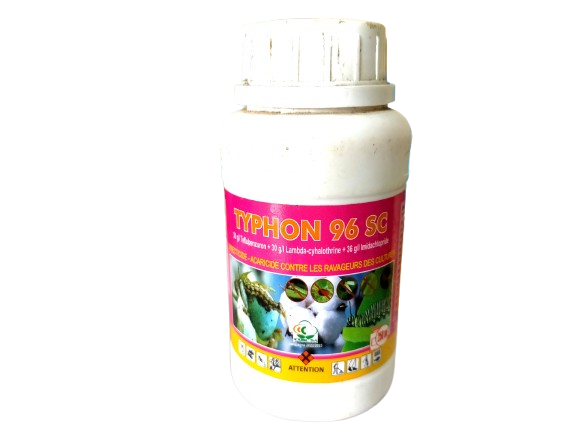 TYPHON 96 SC combine actions systémiques et contact prolongés contre une très large de ravageurs de cultures (chenilles phyllophages ou corpophages endo et exocarpiques, acariens piqueurs-suceurs, criquets, puces, pucerons, jassides, mouches blanches, dydercus, etc.). Il agit efficacement aussi bien contre les œufs les rendant stériles, les larves que les adultes. Il permet ainsi un contrôle de plusieurs générations des ravageurs. Il reste persistant pendant une longue période, il est efficace aussi bien sur le citronnier, l’anacardier, les céréales et les maraichers.