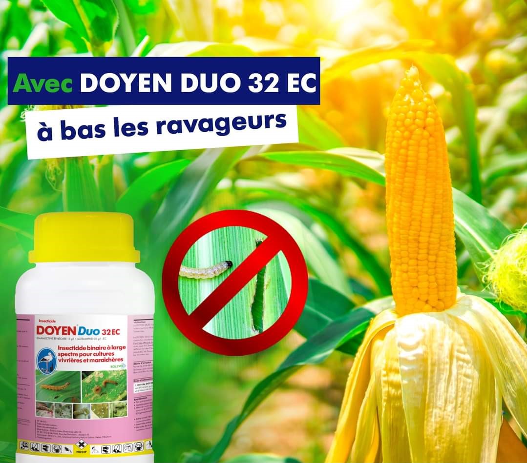 DOYEN DUO 32 EC est un insecticide binaire à large spectre pour les cultures vivrières et maraichères.