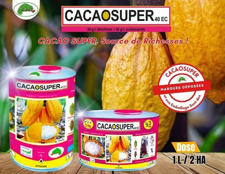 CACAO SUPER 40 EC est un insecticide binaire à action systémique et foudroyante contre les insectes et ravageurs du cacao.