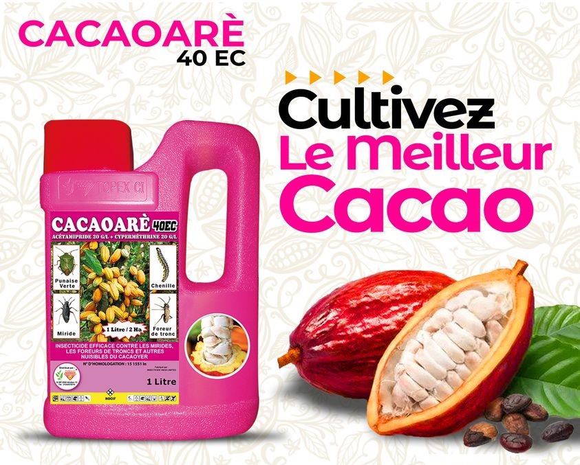 CACAORE 45 EC est un insecticide efficace contre les insectes ravageurs du cacaoyer.