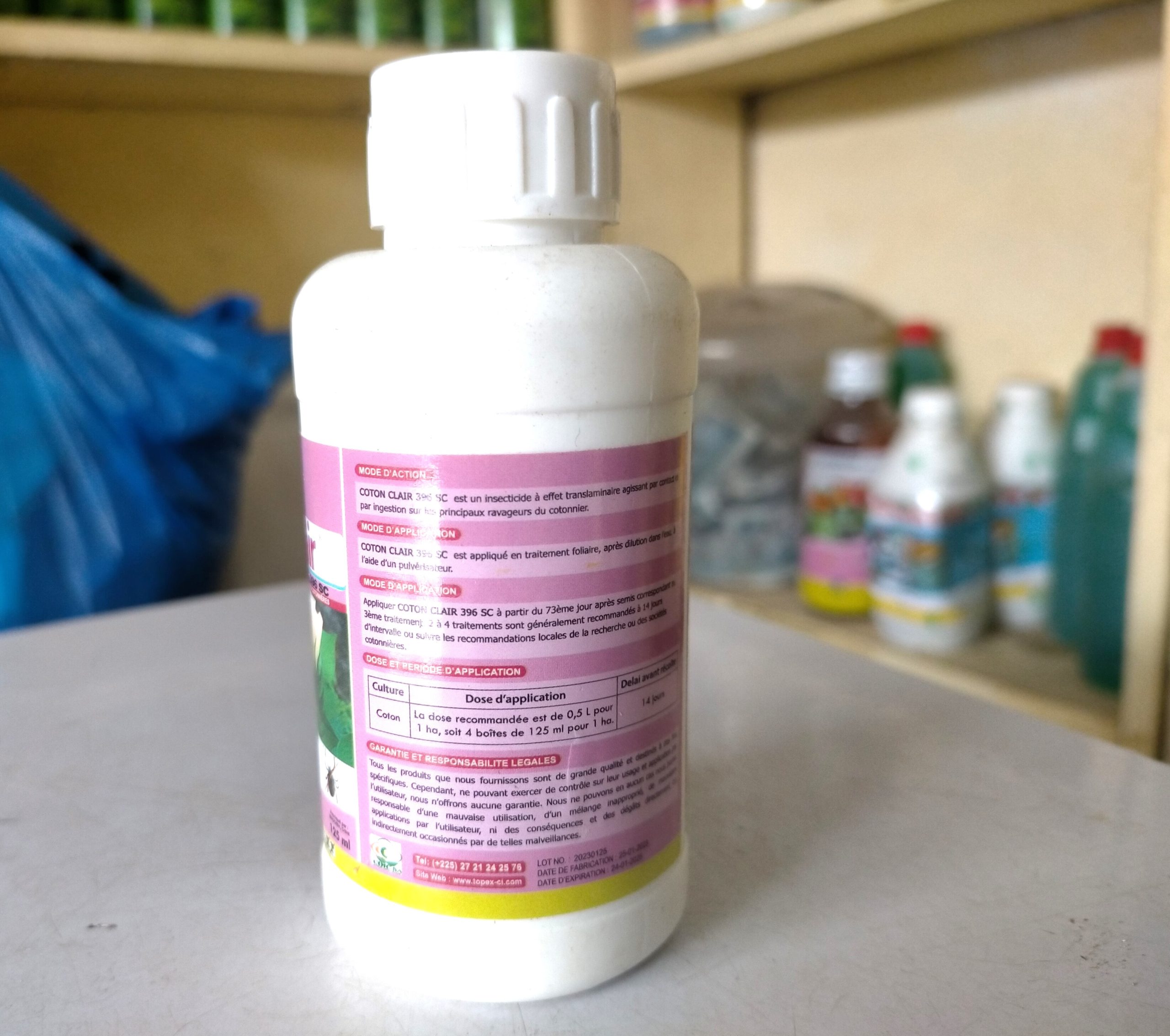 COTON CLAIR 396 SC est un insecticide utilisé pour la lutte contre les ravageurs des cultures cotonnières