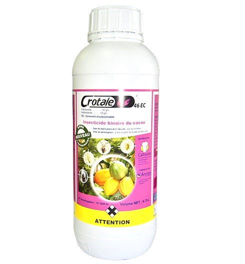 CROTALE 46 EC est un insecticide systémique pour la lutte contre les insectes ravageurs des cultures de cacao et de coton.