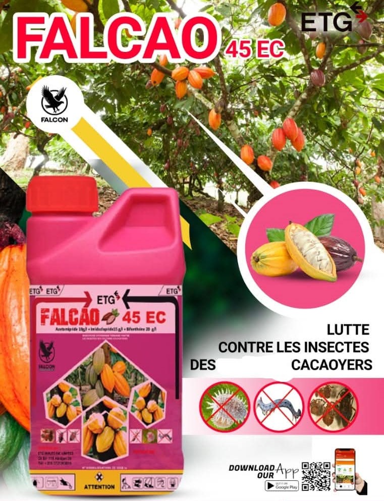 FALCAO 45 EC est un puissant insecticide systémique ternaire contre les insectes des cultures cacaoyères.