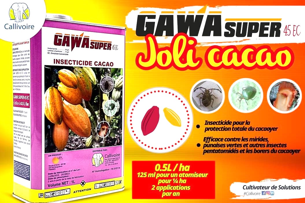GAWA SUPER 45 EC est un insecticide efficace dans la lutte contre les insectes ravageurs du cacaoyer.